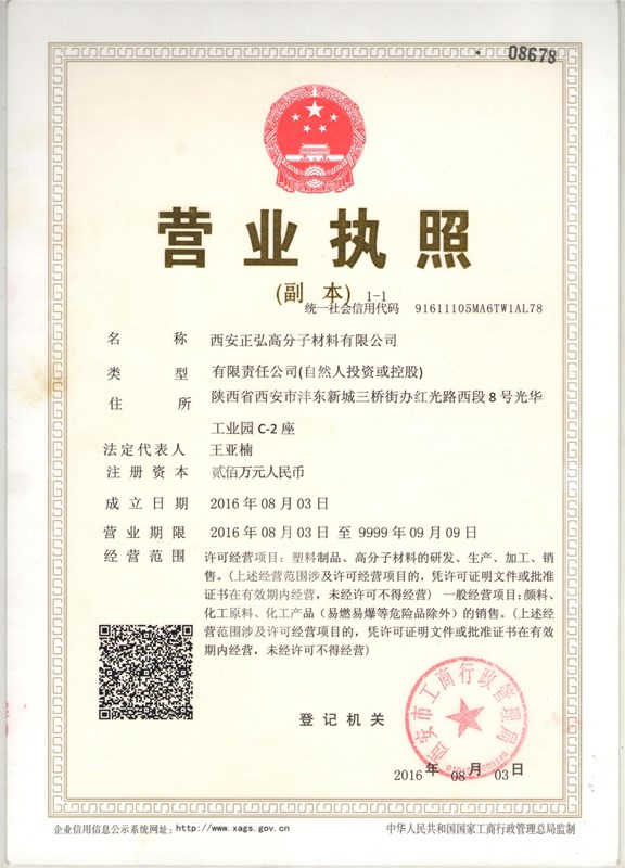 西安正弘高分子材料有限公司營業執照